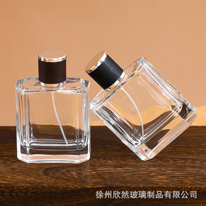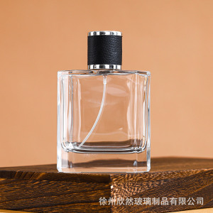 卸売りスポット100ml大容量透明ガラス香水瓶扁角側面接線バヨネットスプレー革カバー