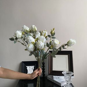レトロな四頭のフランスのバラの花を焼いて花束の造花の乾いた花を飾って客間の食卓の花の装飾品を飾る