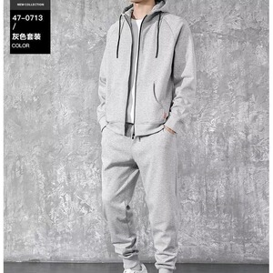 男性春秋フード付きスポーツスーツシンプルな韓国版カジュアルなガーディアンパンツの格好いい男性服とフードのセット