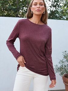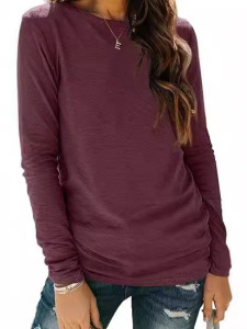 国境を越えた欧米の早秋の高級感の上着の女性の丸首の長袖の底のシャツのギャルの秋の婦人服の純綿のtシャツ