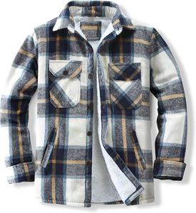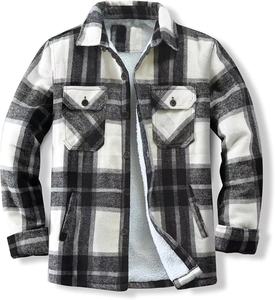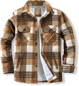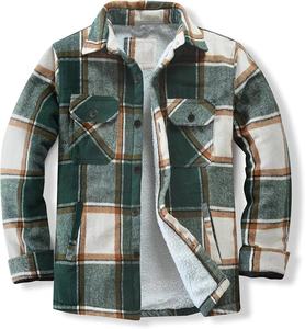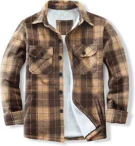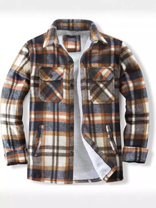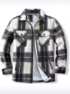 2024年アマゾン向けメンズクロスボーダージャケット、裏起毛長袖、襟付き格子柄厚手シャツ、コットンジャケット、防風