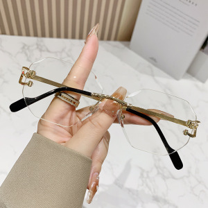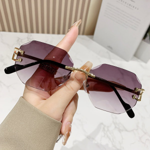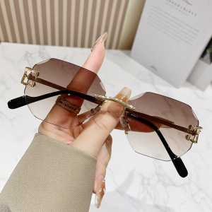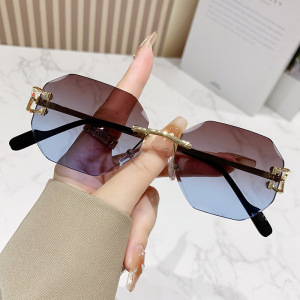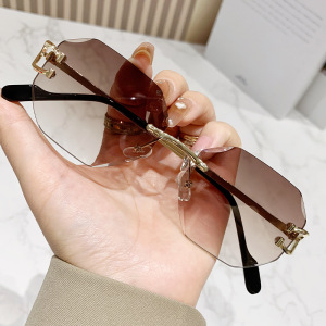 八角形の縁なしのファッションサングラスの女性2024の新型欧米の越境街はinsの潮流のサングラスを撮影します。