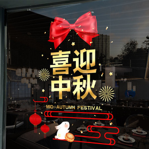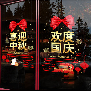 中秋節の装飾ガラス窓ステッカー、ホリデーデコレーション、静電窓花、店舗の窓飾り、国慶節のお祝い雰囲気ステッカー