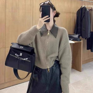 ヨーロッパの高級感のあるPOLOの襟はニットのカーディガンのダブルファスナーをつなぎ合わせます。