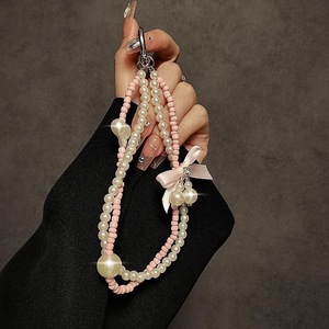ピンクと白のビーズ ピンク リボン リボン ペンダント パール チェーン + カード