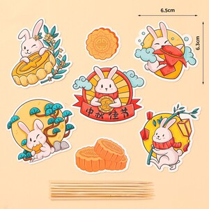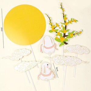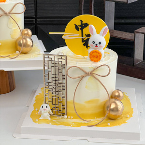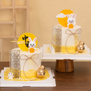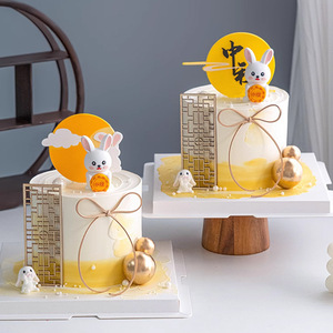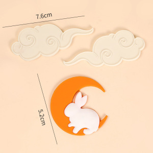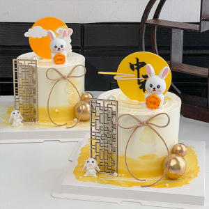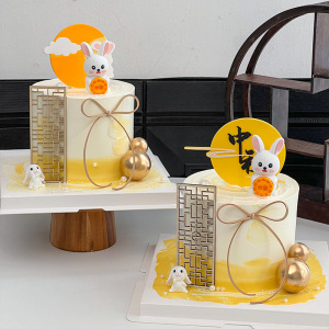 2024新中国式中秋節ケーキ装飾月餅ウサギ玉兎置物古風ソフトゴム月円祥雲プラグイン