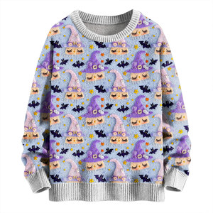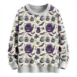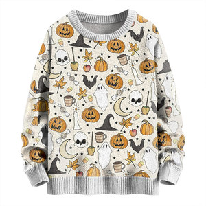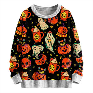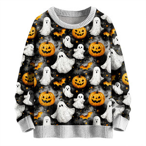 2024ハロウィンのカボチャのランプのプリントの男女の丸首のガードルの太い針の布地のメーカーの商品の供給源の帽子のないガードルの男性