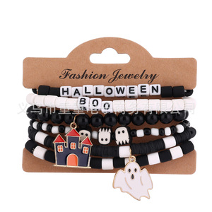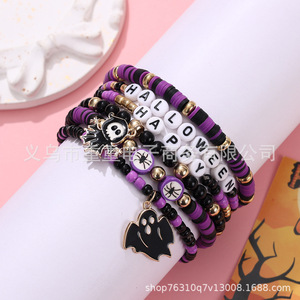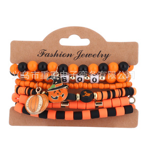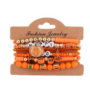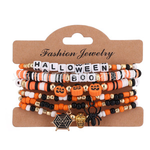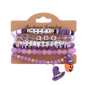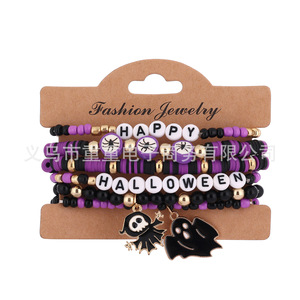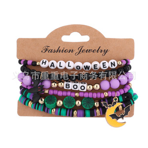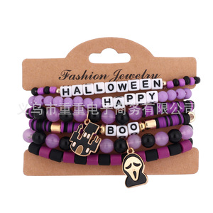 欧米風ハロウィーンブレスレットセット黒オレンジ色紫色赤色テーマ色ハロウィーンブレスレット