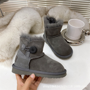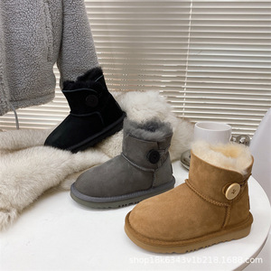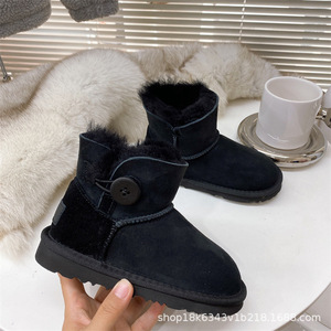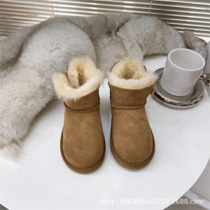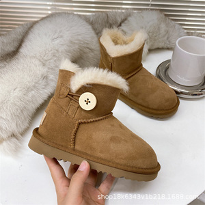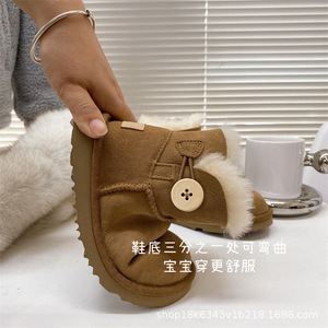 儿童雪地靴皮毛一体2025秋季新款短筒木扣女童棉鞋保暖毛毛靴桑坡
