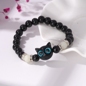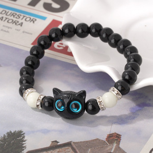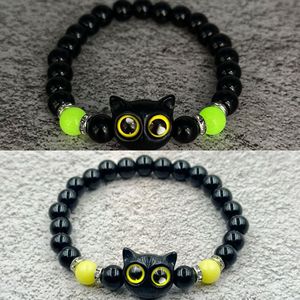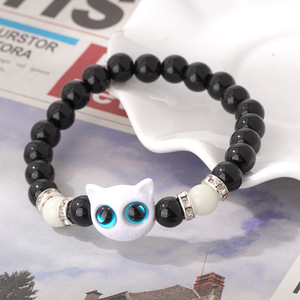 BNS-0437-イエロー夜光白黒猫ペアブレスレット