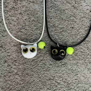 BNS-0437-白黒猫ネックレス イエロー夜光ペア