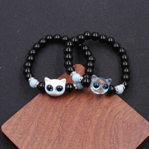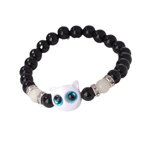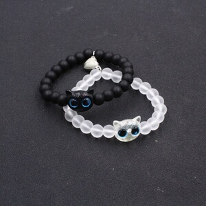 BNS-0437-黒、白、透明の猫の愛の磁気ブレスレットのペア