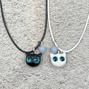 BNS-0437-白黒猫ネックレス ブルー夜光ペア