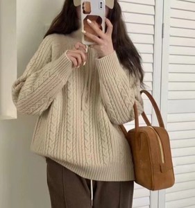 秋冬の新作ニット女性の韓系麻花立襟半ファスナーカーディガン