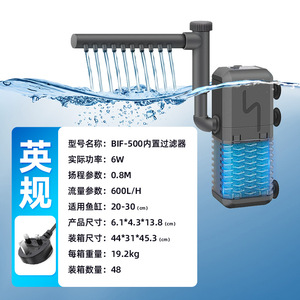 BIF-500 内蔵フィルター (揚程 0.8m、流量 600L/H、20-30cm 水槽に適しています) 6W-英国規格