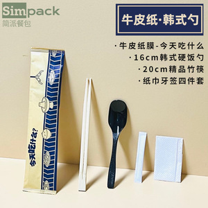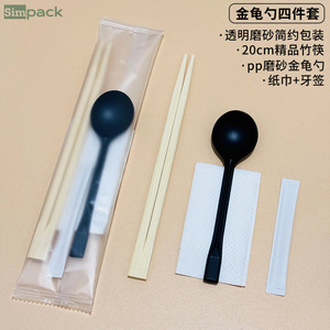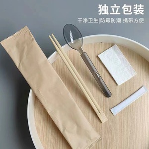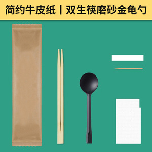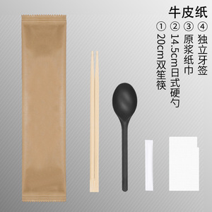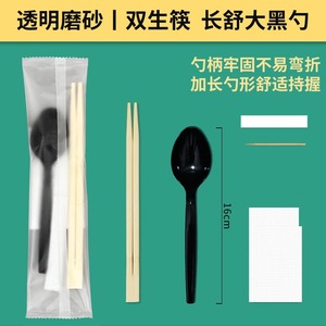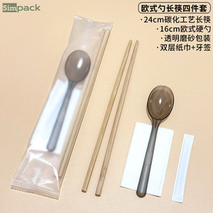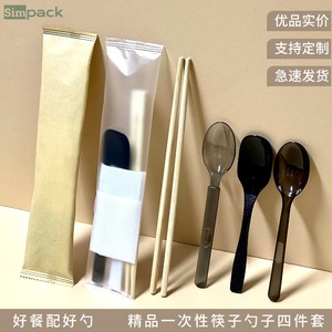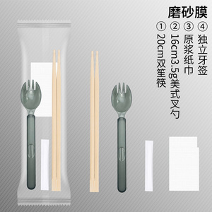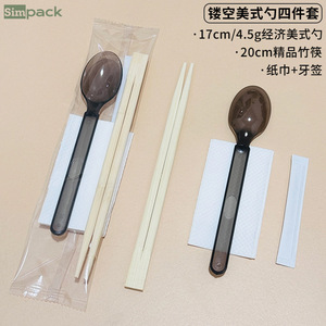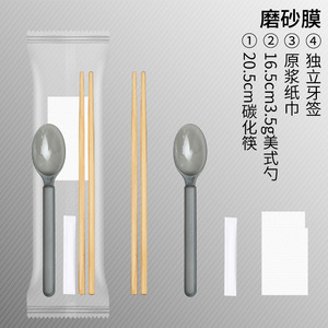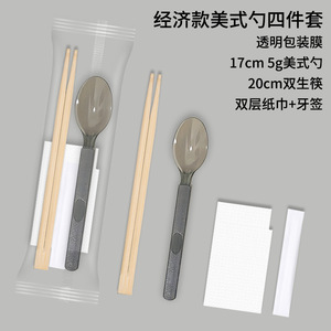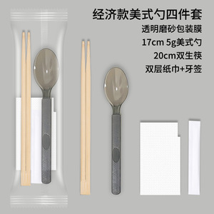 割り箸スプーン四点セット独立包装食器テイクアウトファーストフードつや消しアメリカンスプーン四合一セット