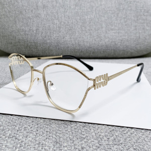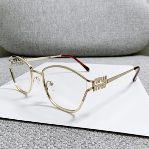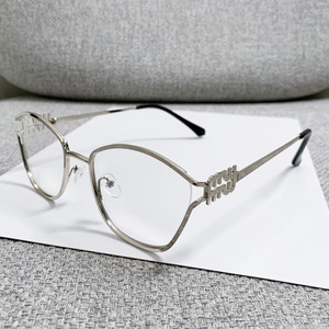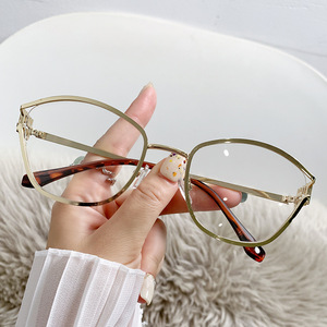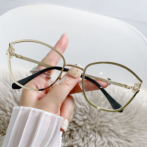 新型欧米ファッションレトロ猫眼金属平光鏡ins個性ファッション素顔ブルーレイ防止フレームメガネ