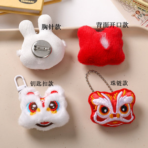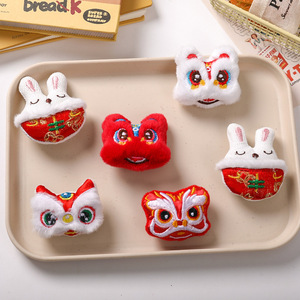 新年国风毛绒醒狮配饰国潮diy发饰发夹灯笼胸针服饰箱包鞋帽辅料