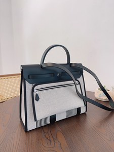 Herbagキャリーバッグ31cm防水キャンバスステッチ本革レディース女性カバン斜め掛けシングルショルダーバッグ大容量