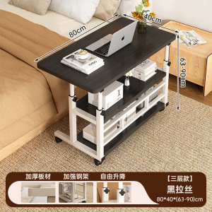 3層[昇降可能]デスクトップ80*40高さ調節可能63-90cmブラックブラッシュド