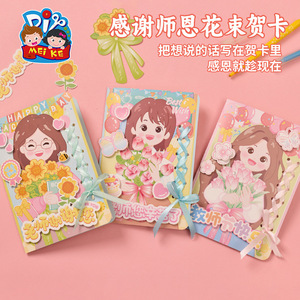 女性の日(3月8日)の花束グリーティングカード、学生の手作りポストカード、心温まるクリエイティブなギフト