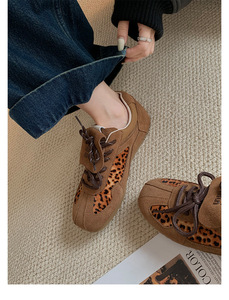 ブドウのお母さんの同じタイプの阿iu家の豹の紋様のアメリカの復古のレジャーは蓋の徳の訓練の靴の女性の運動の板の靴の秋冬をひっくり返します。