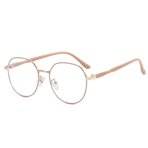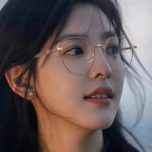 ミルク茶色のメガネフレーム近視の女性は、度数の素顔が白く見える顔をしています。