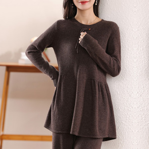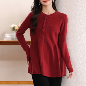 レトロなバックルデザイン感24秋冬新作厳選100純ウール丸首長袖女性ショートスカート