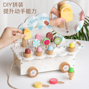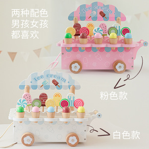 子供の木のシミュレーションアイスクリームの車の赤ちゃんの役は親子のインタラクティブな台所のおもちゃを演じます。