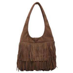 ヨーロッパとアメリカのレトロなつや消しタッセルバッグ、高品質ニッチ脇の下ショルダーバッグ、大容量のレイジースタイル通勤トートバッグ