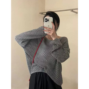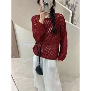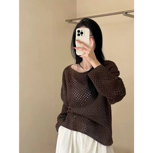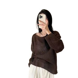 ヨーロッパの高級レトロ中空長袖セーター、女性用初秋、多用途、ファッショナブルで年齢を軽減するニットトップ