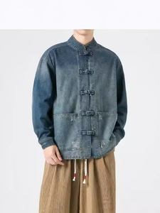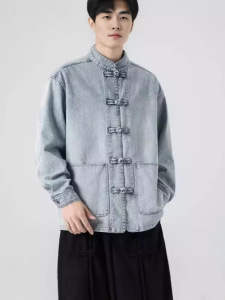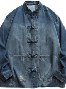 新中国風デニムコート男春と秋の国潮風ゆるいカジュアルジャケット青年ファッションレトロ唐服上着