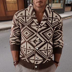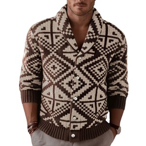 外国貿易の紳士服のカジュアルな幾何学のジャカードのニットのアメリカの復古の粗い針のカーディガンの毛織のコートの男性のSY0077