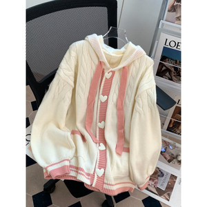 大きいサイズの太ったmm200斤の帽子のセーターのコートの女性の小さい子供の秋冬はゆったりしている年齢のニットのカーディガンを着ます。