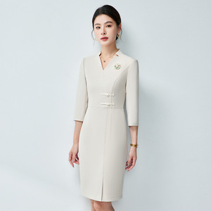 国風盤は新型の職業のワンピースの気質の販売部の茶芸師のホテルの前の礼儀を掛けて作業服を接待します。