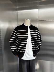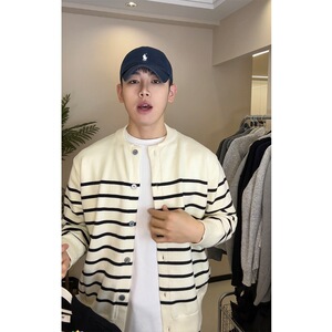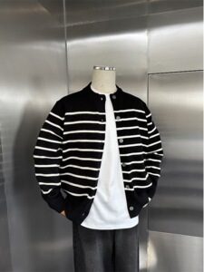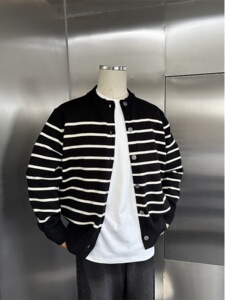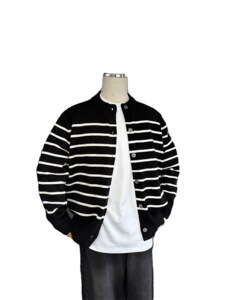 軽熟風男性秋冬コートシンプル学院ストライプセーターカーディガン