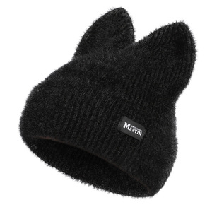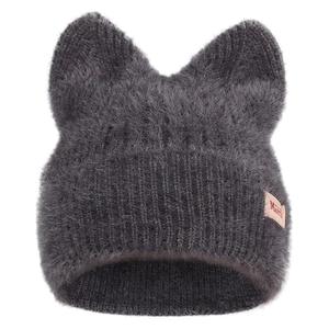 帽子女性ニット帽秋冬かわいい猫の耳保温フード