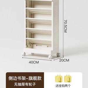サイド本棚 5段モバイルフレーム 引き出し付き 車輪付き 取り外し可能
