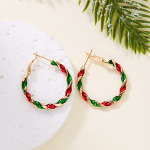 欧米の越境して新型のクリスマスの耳輪を越えて個性の金のクリスマスのカラーの螺旋の幾何の耳輪のイヤリングの女性の卸売りを配合します。