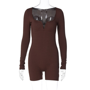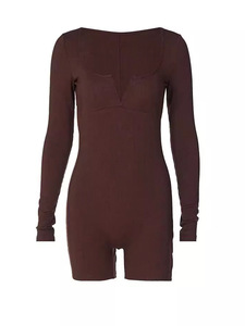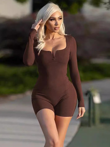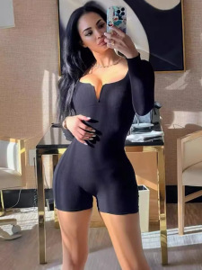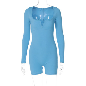 速売通クロスボーダー女装2024秋の新ファッション純色修身U襟長袖ワンピースパンツ潮卸売り