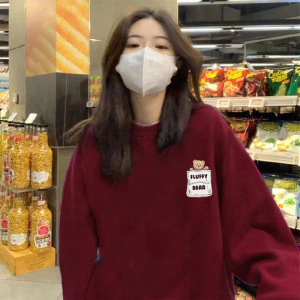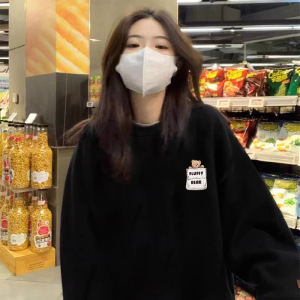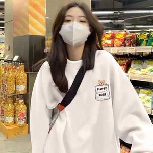 重いポンドの丸首の衛衣の女性の2024春と秋の新型の大きいサイズはゆったりしています。