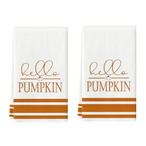かぼちゃのストライプのキッチンタオルのカエデの葉の文字の皿洗いタオルのキッチンの皿洗いタオルの浴室の手拭きタオル