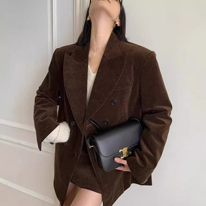 现货灯芯绒西装外套女春秋设计感穿搭气质休闲修身复古西服