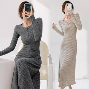 2024秋冬妊婦のフレンチニットの穴の中にロングスカートを掛けます。