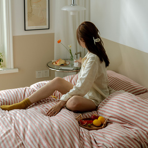 天蓋綿裸寝綿四点セットシンプルなストライプニット綿布団カバーベッドカバー純綿シーツ寝具