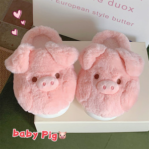 細いストリップ 2025年新作 レディース 可愛いピンクの豚柄コットンスリッパ 冬用あったかファー付きシューズ ホームシューズ ins