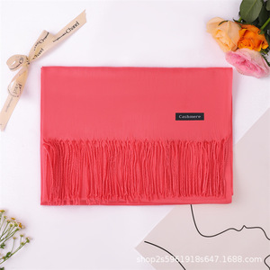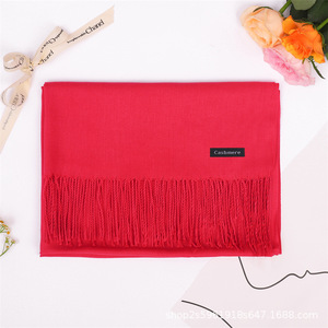 春秋マカロン無地イミテーションカシミヤスカーフ、定番年次総会用大判レッドスカーフ、ロゴ入り厚手ショール卸売