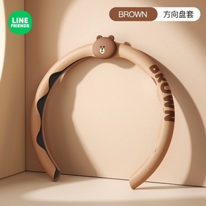 ブラウン熊人形自動車ハンドルカバー滑り止め超薄型D型カード式四季通用カバー方形盤保護