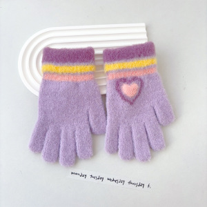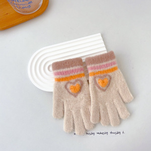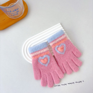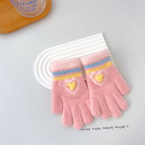 韓国版の甘い子供の保温手袋の女の子の冬の防寒は厚い虹のストライプの愛の字を厚くして凍ることを防ぎます。