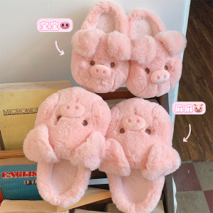 冬の子供の暖かい毛皮のような靴ホーム綿の靴 2025 新しい女の子の赤ちゃんかわいいピンクの豚綿のスリッパ